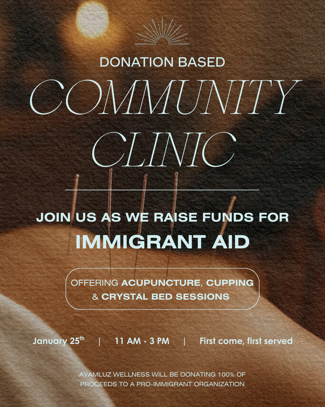 Each month we host this community clinic, all donation based only; pay what you can. Then we donate 50% of the proceeds to a different organization each month. Everyone wins!